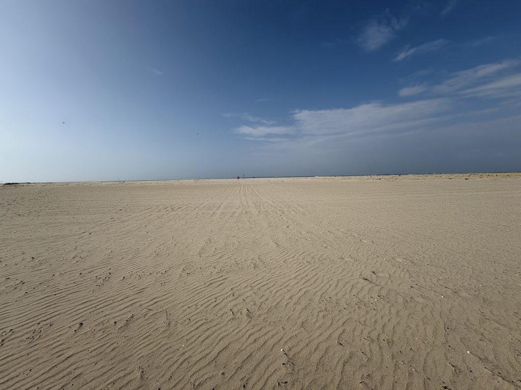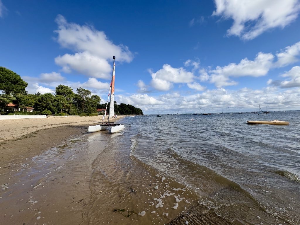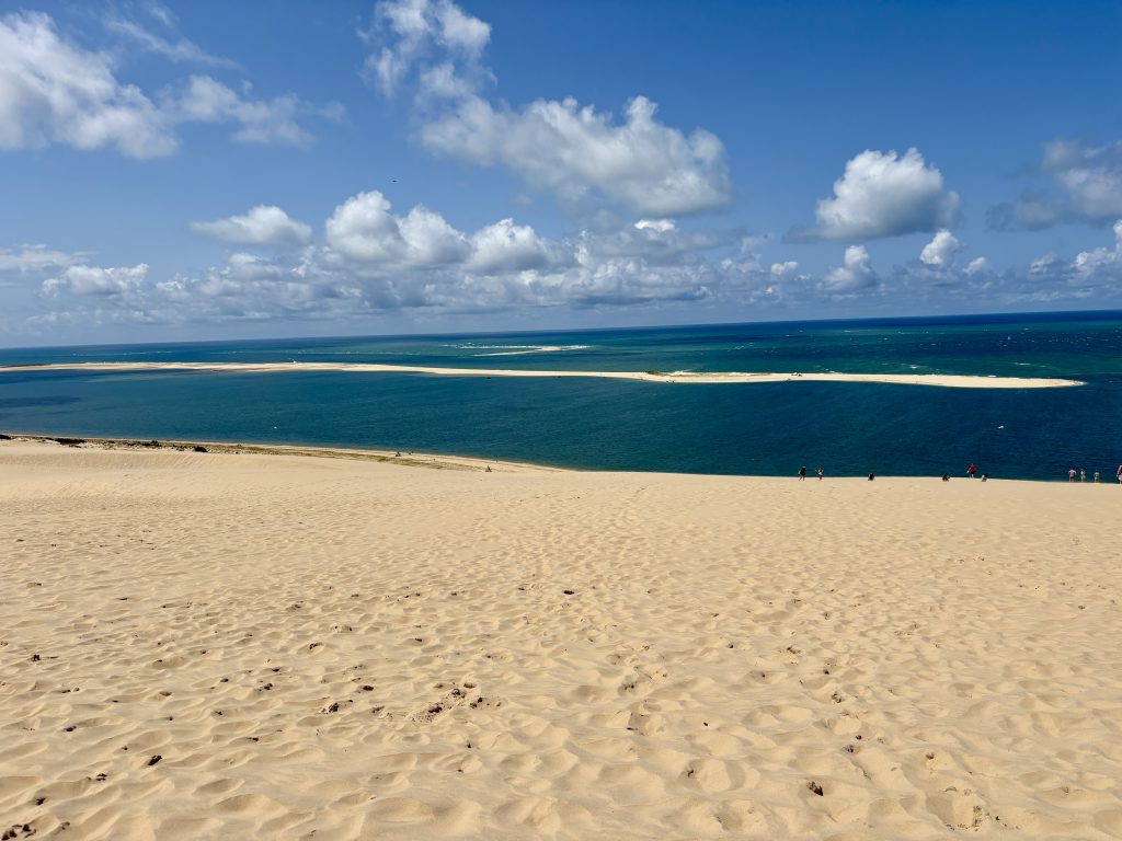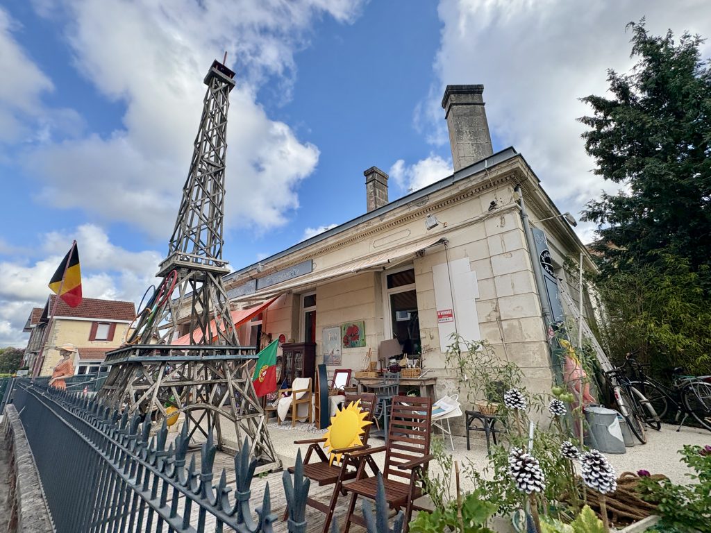 Night Two – Ares via The Dunes of Pilat – We had stumbled across the fact that the largest sand dune in Europe was a short diversion from our next destination! That was it, off we diverted. When we left Messanges it was dull & overcast, by the time we arrived at the dune, it had brightened up. The dune is 10 metres high & 500 metres wide with massive views of the Atlantic Ocean & Landes forest. Well worth seeing. Arrived in Ares late afternoon, parked up then went for a wander along the beach to the town. Nothing to write home about apart from a large wooden Eiffel Tower in the garden of a Brocante! The CCP was perfectly fine, £11 for the night.