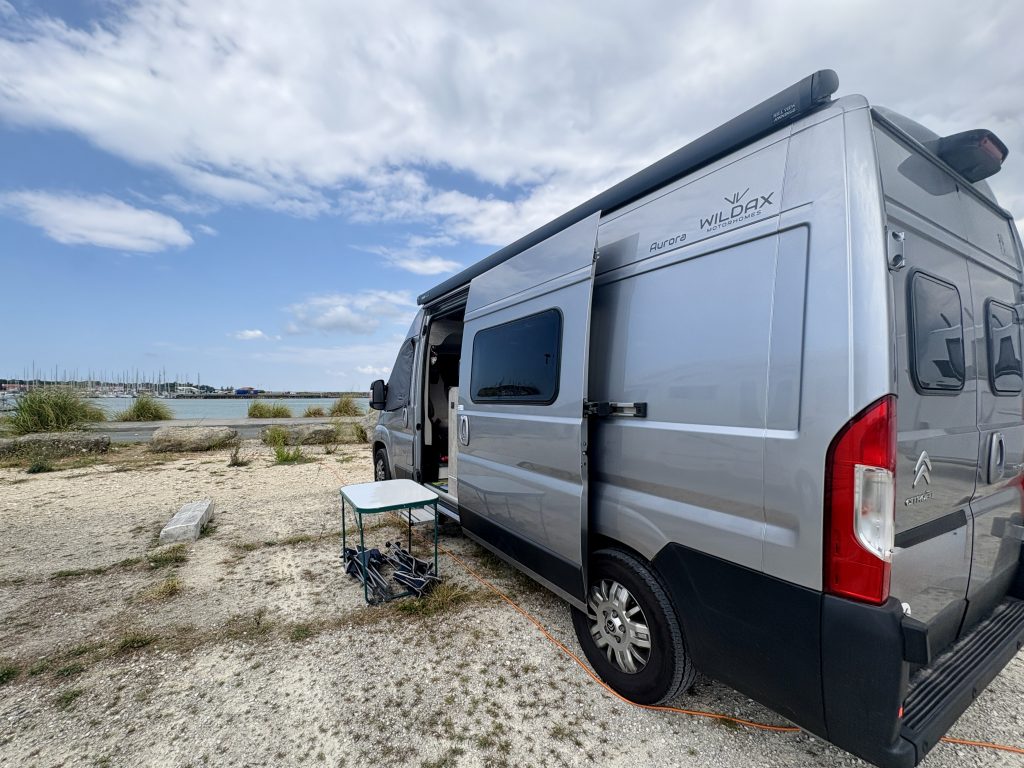 We didn’t have anything planned after our Biarritz stop, so we had to come up with a three night plan to take us to our next booking on the Ile de Re. Initial thoughts were to head up to Bordeaux & around to La Rochelle then over the bridge to the Ile. We looked at the map & decided to head up the west coast, through the Gironde then take the ferry from Port Medoc to Royan. No campsites were being booked, we were going to do back to back Camping Car Parks. We would shower in the van & see how we got on. As some of the CCP’s are in popular places, we opted to upgrade our membership a couple of months ago, that would allow us to book in advance the sought after locations. It’s been well worth the £25 fee.