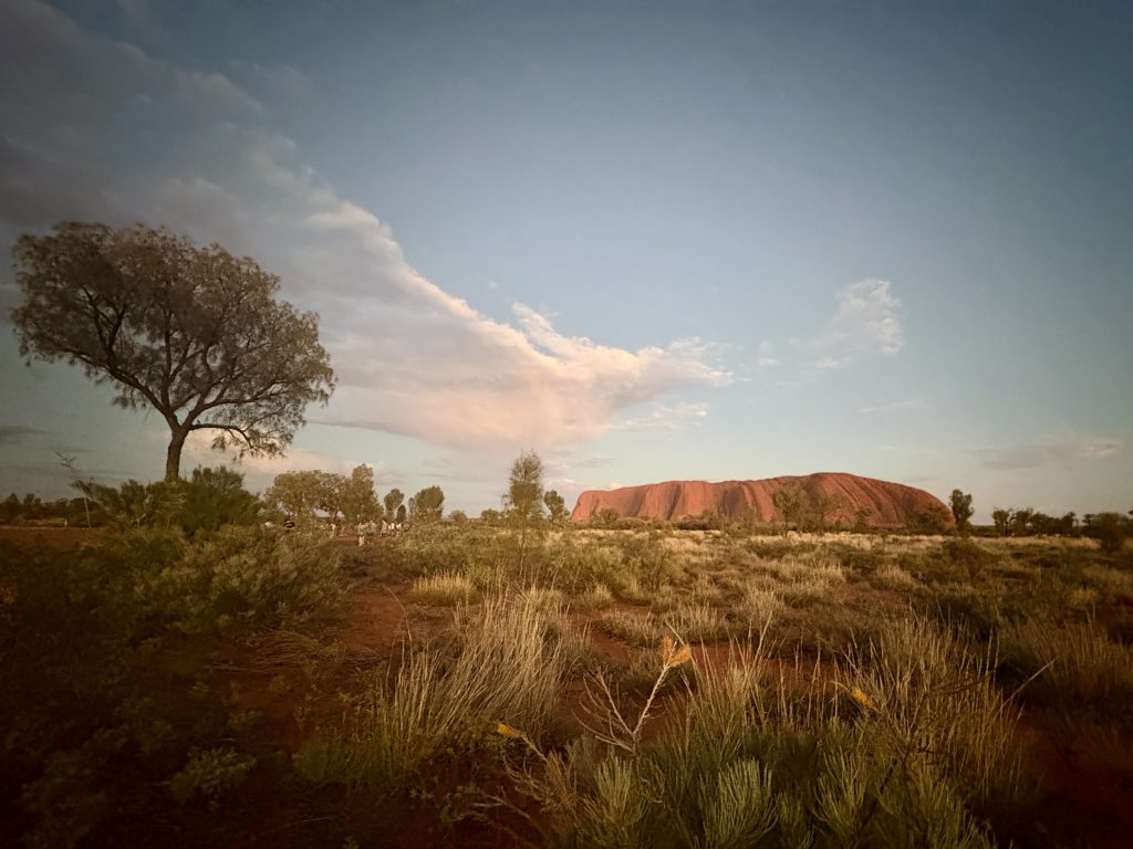 The drive to the airport turned in to a short sightseeing trip over the Anzac Bridge, we got lost in the tunnel! Eventually after a short detour via the city, we headed back over the bridge and got back on track. Car handed back, luggage dropped at the storage facility, we were on the flight to Uluru. As per our recent luck the weather forecast for the next three days was due to be 40 degrees +, makes a change from rain.