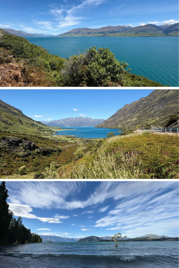 Before leaving for our ultimate destination Wanaka, which was a three hour forty minute drive,  we bookmarked a few places of interest to stop on the way.  Knights Point, Ships Creek, Haast, a couple of waterfalls and then finally towards the end of the journey Lake Wanaka and Lake Hawea.  Wherever you looked there were massive views.  We were desperate to see the famous “That Wanaka Tree” – the most photographed tree in New Zealand.  It didn’t disappoint, the tree has been there for around seventy years and was originally a farm fence post.