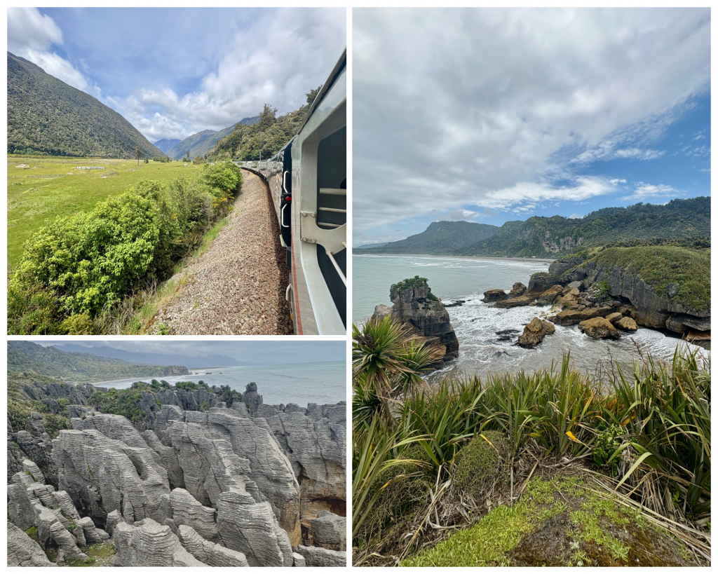 A short flight from Auckland and we were in Christchurch.  It was a quick one nighter, as we are heading back to Christchurch for two nights later in the month, before we fly to Sydney.  Without any trial we were taken straight to prison.  Our accommodation for the night was a cell in a former prison, Addington. We’d chosen a double private cell, as we couldn’t face sharing a dorm with bunkbeds.  Up early the next morning to catch the Trans Alpine train from Addington to Greymouth. One of the worlds great train journeys covering 139 miles in five hours and travelling through the Otira Tunnel which is just under five miles long.  Arriving in Greymouth, we picked up our hire car for the next three weeks.  “Gavin Still” is a bright white (described by hire car employee) hybrid Hyundai Kona.  We were off!  Rather than head straight to our first stay over, we headed north as we wanted to see the “Pancake Rock” layered limestone formations, marine fossil layers compressed over millions of years and they eroded by the sea.  Well worth the detour.