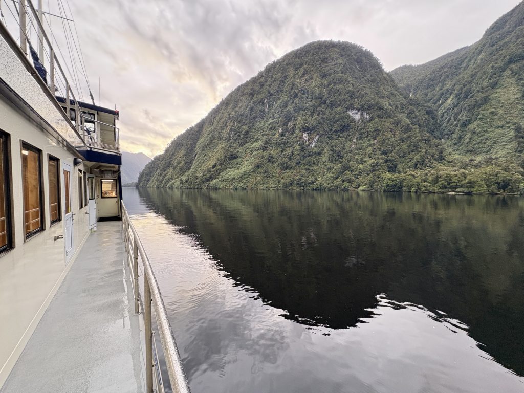 Anchors up at 6.30am and after a nice breakfast buffet, we explored the different arms/areas of the sound for the next four hours. The weather was changeable and all the rain had created a lot of temporary waterfalls, which were spectacular. All too soon we were back at Deep Sound for the return journey to Manapouri. An absolutely fantastic, once in a lifetime trip that had to be experienced to be believed. We are both fairly sure that nothing else can top the two Sounds – Milford and Doubtful.