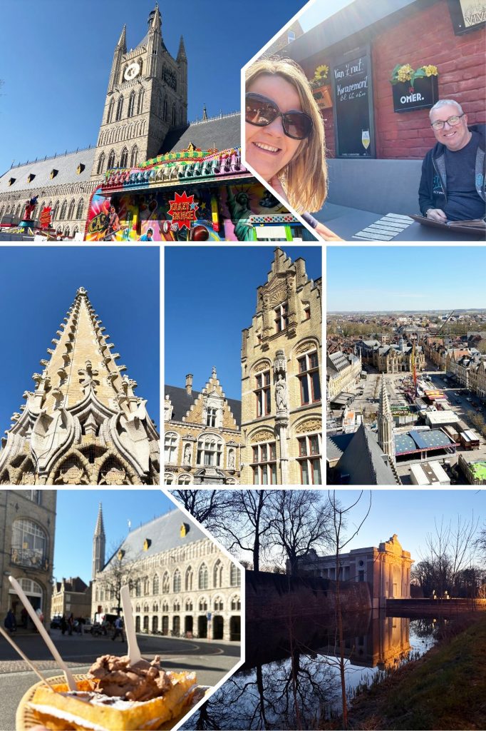 Woke this morning to another gorgeous bright day – perfect for a birthday. Headed in to Ypres for a breakfast of coffee & croissants at a restaurant overlooking the square (which has currently been taken over by a fairground) Spent a couple of hours at the In Flanders Field Museum, we opted to pay the extra few euro’s to climb up the Belfry for big panoramic views of the city and surrounding area. Amazing views & perfect weather for it. Back down we completed the audio tour & agreed that we were both museum’d out. Fortunately just across the road was a waffle stop! Yes Please! Popped in to a bar for a quick drink in their garden before back to the “Ranch” for a siesta. Went out in the evening for birthday drinks/food. Where to tomorrow? Not sure, we may continue in Belgium if we can get the LPG adapter sorted, but if not then back to France to fill up. Our tank is now completely empty.